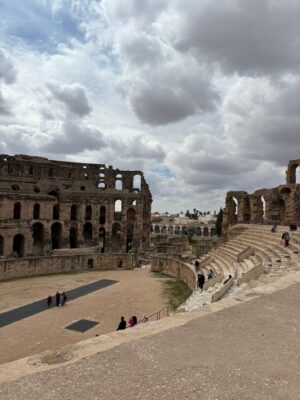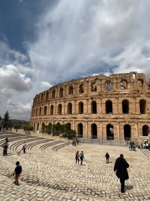 El Jem Kolezyumu, Tunus’un Sousse şehrinden yaklaşık bir saatlik uzaklıkta bulunan, UNESCO Dünya Mirası Listesi’nde yer alan bir Roma İmparatorluğu amfitiyatrosudur. Roma’daki Kolezyumdan sonra dünyadaki en büyük amfitiyatro yapılarından biri olarak kabul edilmektedir. Amfitiyatrolar, Roma İmparatorluğu döneminde halk eğlenceleri için kullanılan, gladyatörlerin birbirleriyle savaştığı veya yırtıcı hayvanlarla mücadele ettiği büyük arenalardır.